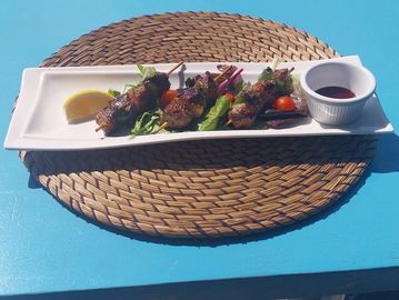 Marinated steak and vegetables skewered and grilled. A famous East African BBQ favorite.