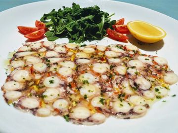 Steamed Octopus served with warm potato, Cannellini beans and fresh local tonmatoes