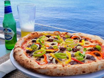 Tomato, Mozzarella, Shrimp, Calamari, Mussels & Clams (when available).
