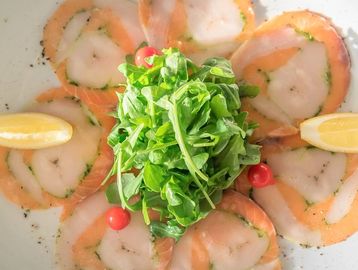 Thin sliced Swordfish and Salmon served with a roasted Tomato Vinaigrette.