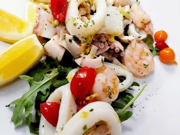 Blanched Octopus, Shrimp, Calamari, Mussels in olive oil lemon vinaigrette