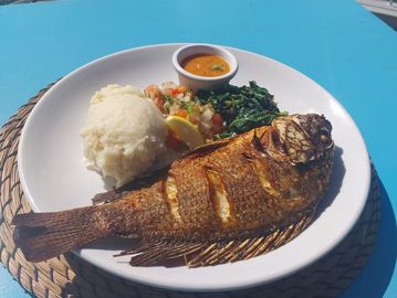 Fried fresh water fish served with choice of ugali (corn meal) or white rice and